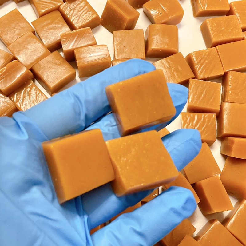 キャラメルの中に黒い点がありますが、バニラビーンズです。