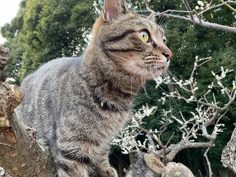 猫の悠太は梅の木に登って世の中を眺めるのが好きで、